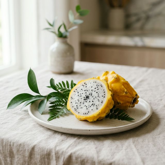 The Yellow Dragon Fruit (Selenicereus megalanthus) is the most prized of all pitaya varieties, known for its superior sweetness and complex tropical flavor. Its golden skin and snow-white flesh make it a showstopper at any table. Exceptionally rare outside of South America.
